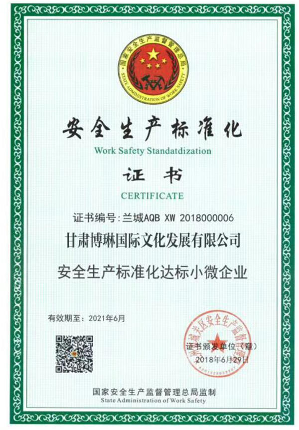 安全生產標準化證書